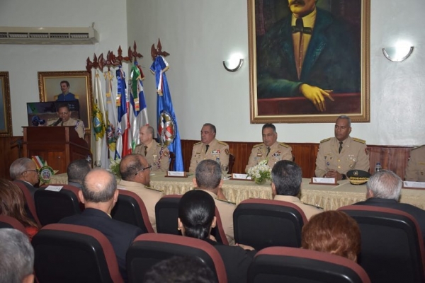 El Mayor General Estanislao Gonell Regalado, ERD., acompañado por Oficiales Generales del Estado Mayor Conjunto del Ministerio de Defensa, el
