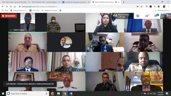 El recibimiento virtual fue realizado a través de la aplicación Meetroom (plataforma de Google) y en el cual 36 cursantes entre ellos Oficiales Superiores de FF.AA, un Coronel de Guatemala y profesionales civiles, recibieron la bienvenida al programa académico por parte de las autoridades del MIDE, el @unade_rd y directivos de la @egaeerd.